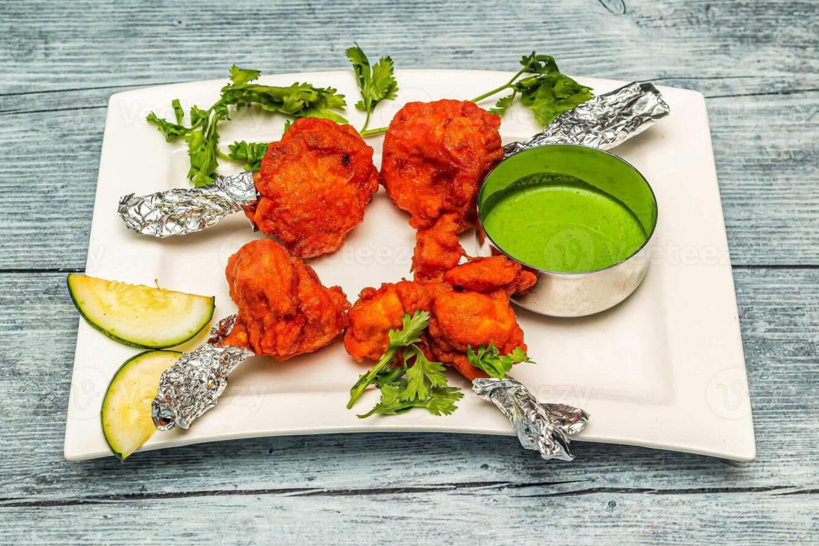 One of the all time favorite starter from Indian sub-continent. A succulent and juicy chicken wings marinated in mixture blended with spices and fried until