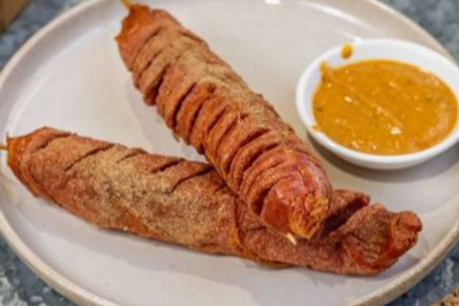 Juicy and flavorful chicken sausage deep fried to prefection see
