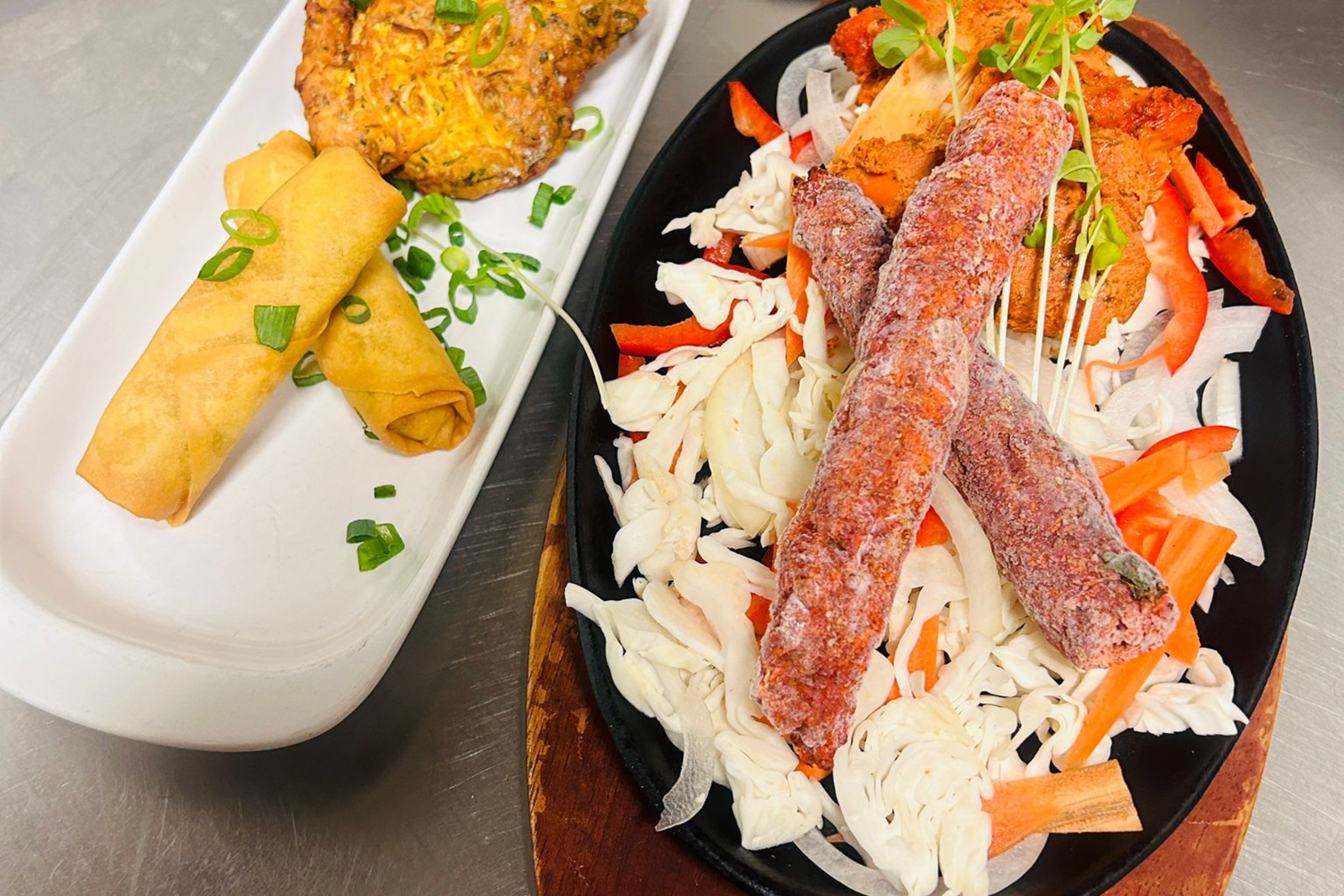 2 PCS of Mustang tikka, Himalayan lamb kebab, Nepali pakauda and veg spring rolls served with mint sauce and home made tamarind sauce.