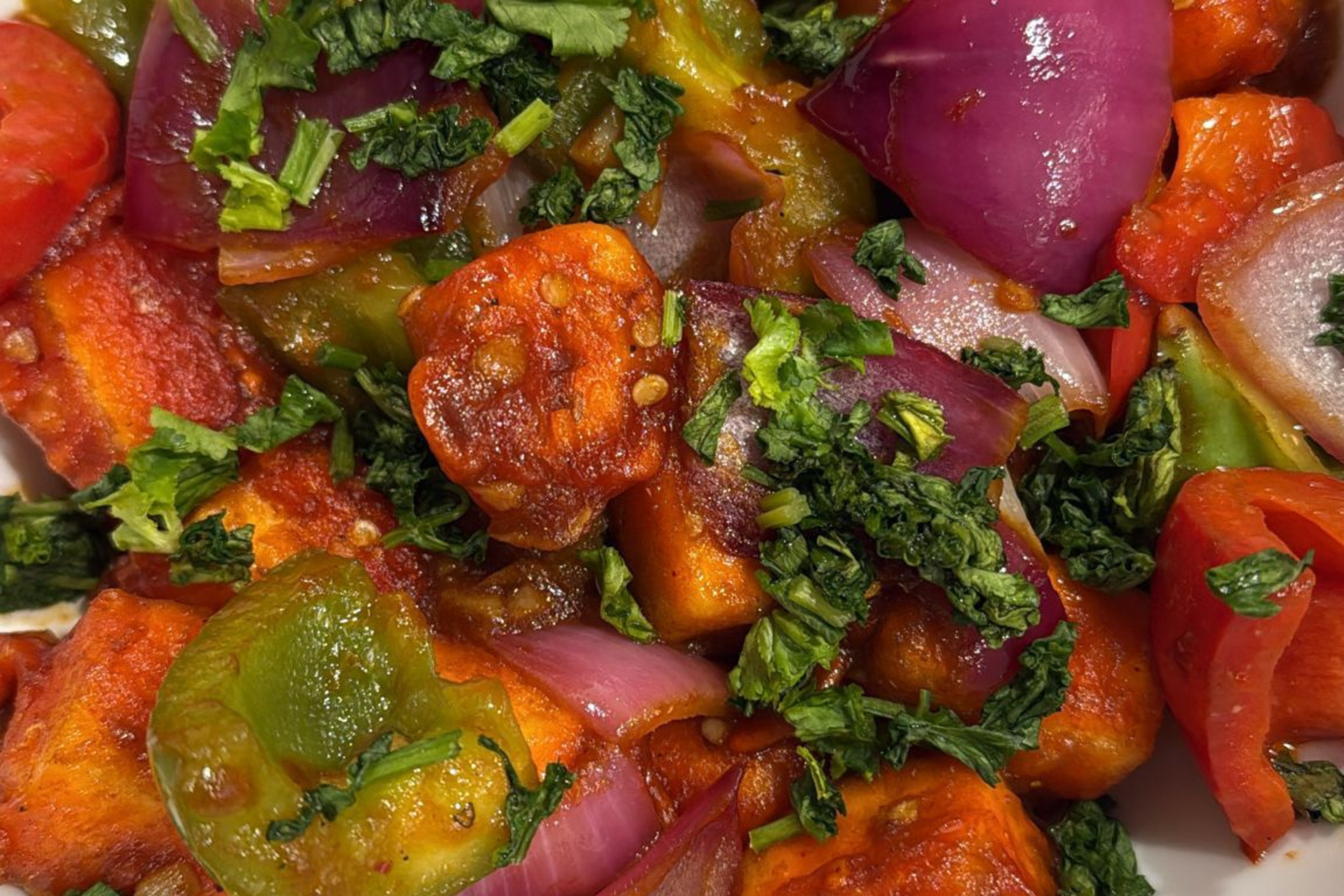 Paneer cubes cooked in homemade sauce of onion, tomatoes, distinctive spices from mustang region of Nepal and finished with sautéed capsicum and onion