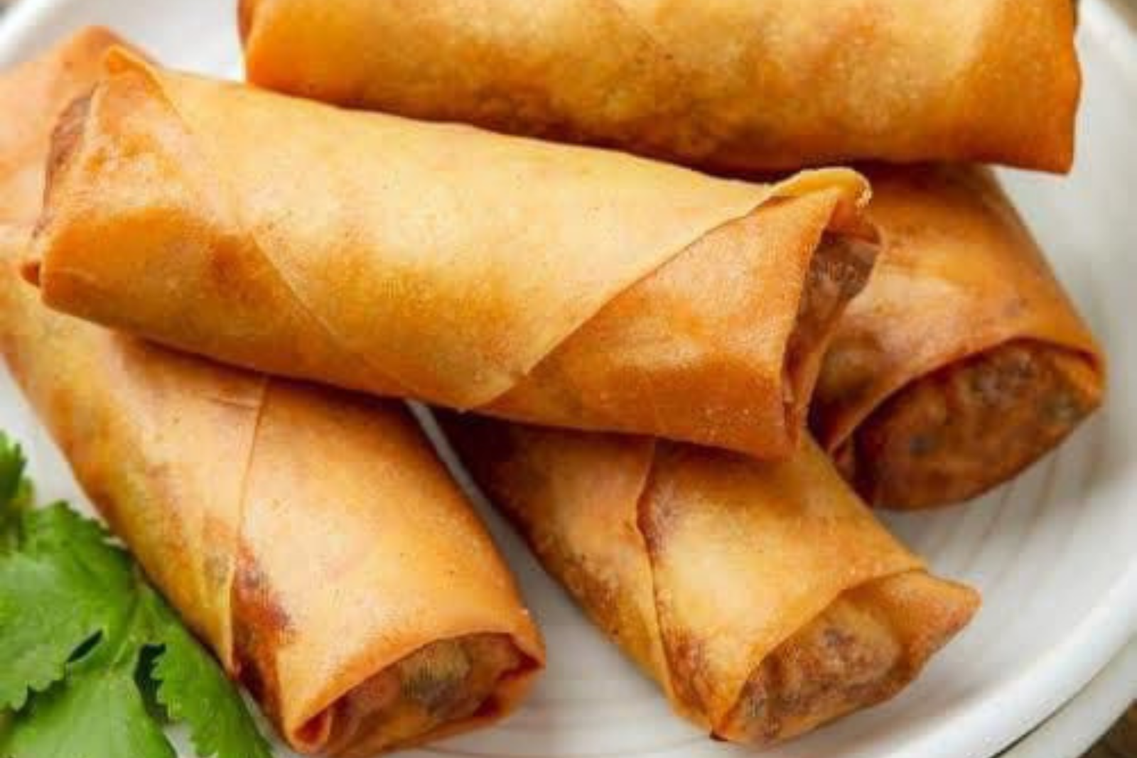 Rolled appetizer where a pastry sheet is filled with vegetables, rolled & fried and served with home made tamarind sauce.