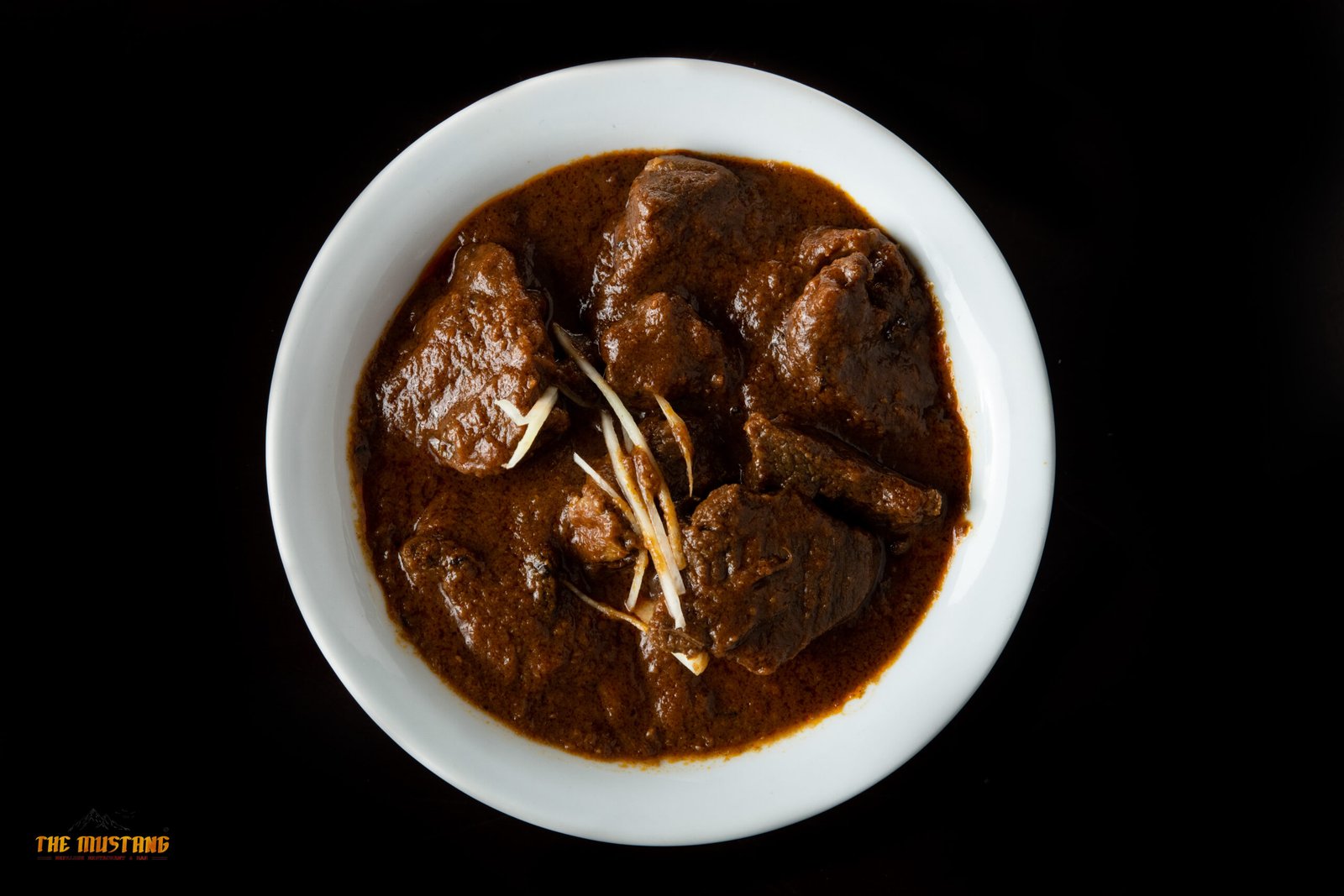 Boneless beef pieces cooked in onion and fresh tomato gravy and exotic Himalayan herbs and spices.