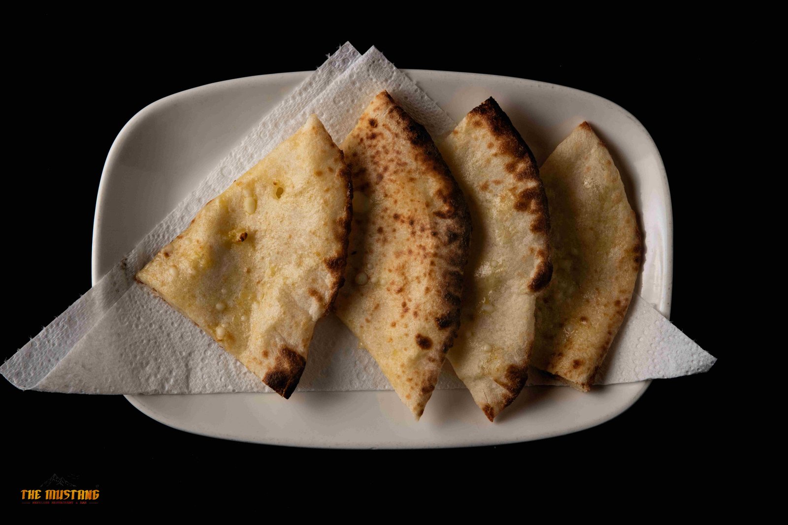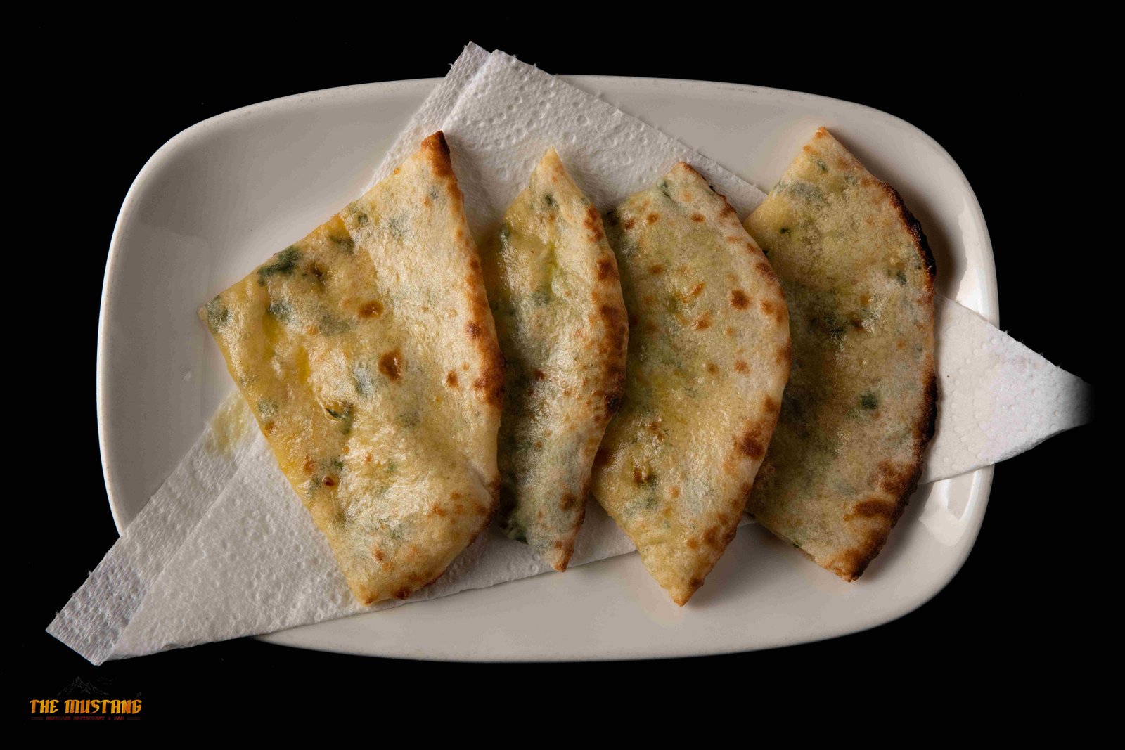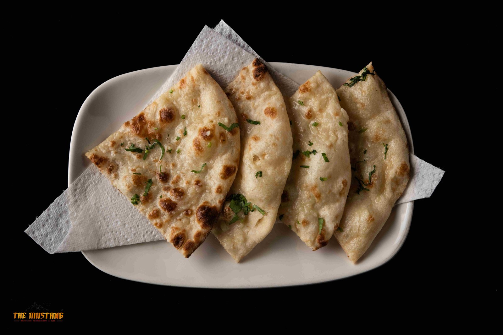 Naan filled with a mix of shredded cheese & fresh spinach and brushed with plain butter.