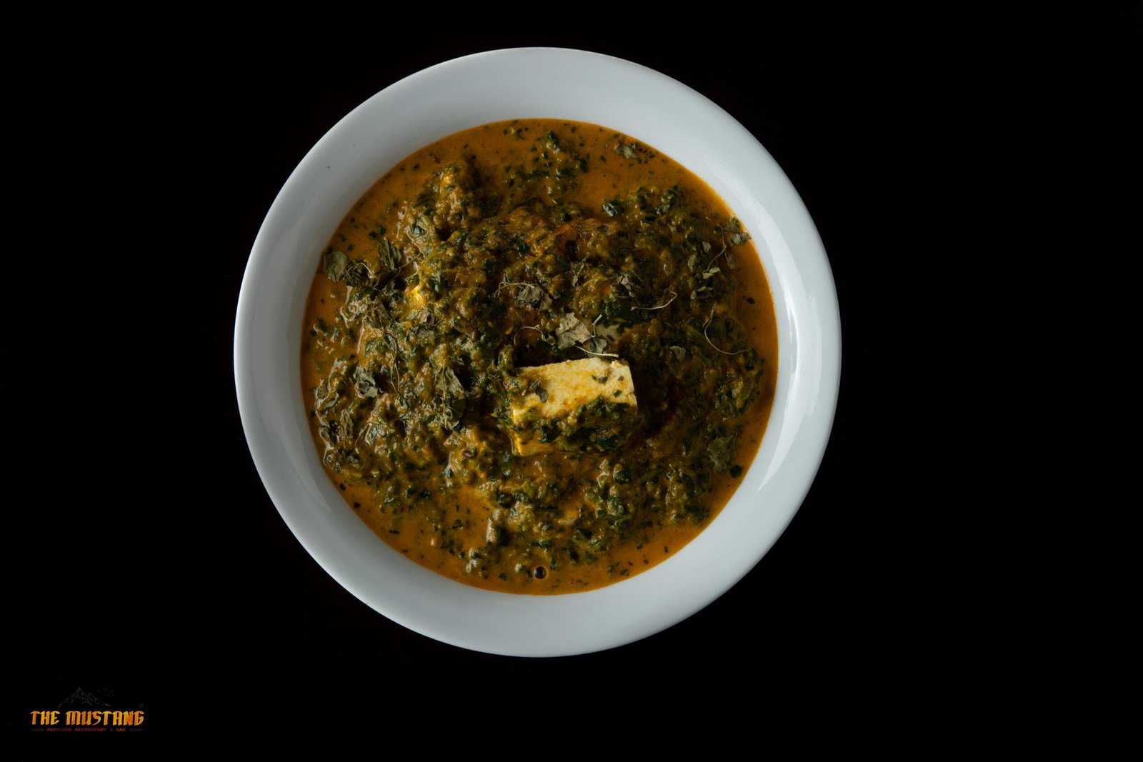 Cubes of homemade cottage cheese cooked in flavourous creamy sauce of fresh english spinach and himalayan herbs and spices
