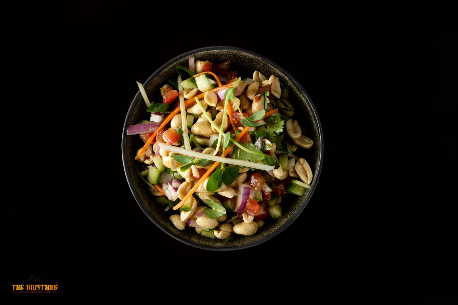Nepali style spicy peanut salad with lime, tomato & onion salsa.