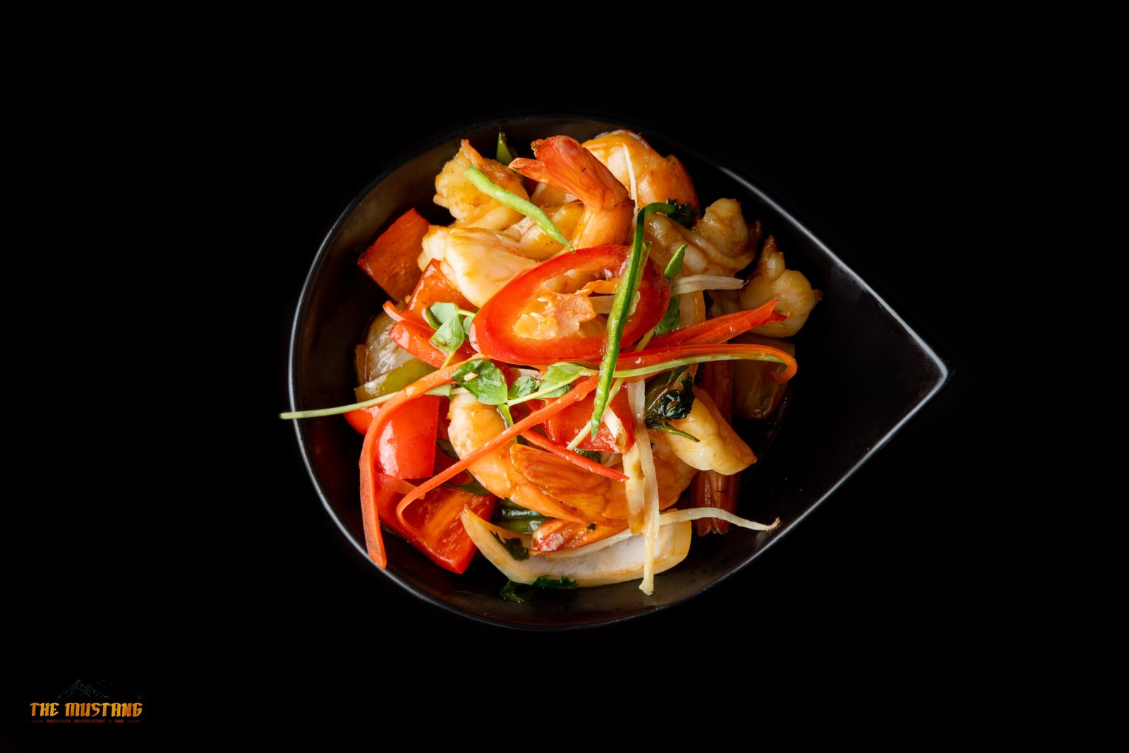 Tiger prawns simmered in homemade sauce of lemongrass, kaffir lime leaves & Himalayan spices finished in coconut cream.
