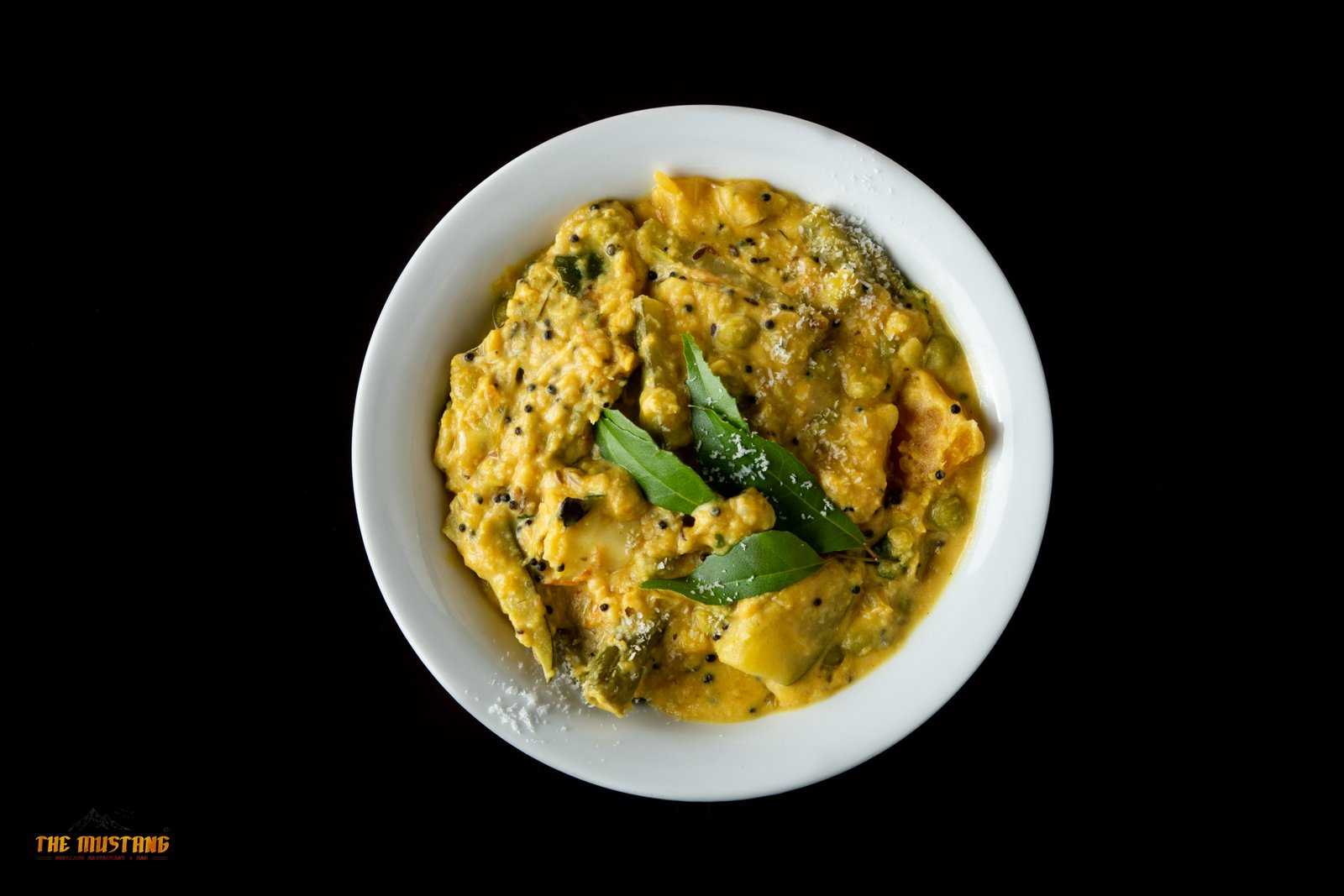 Fresh mixed vegetables and red lentils cooked in coconut cream and aromatic