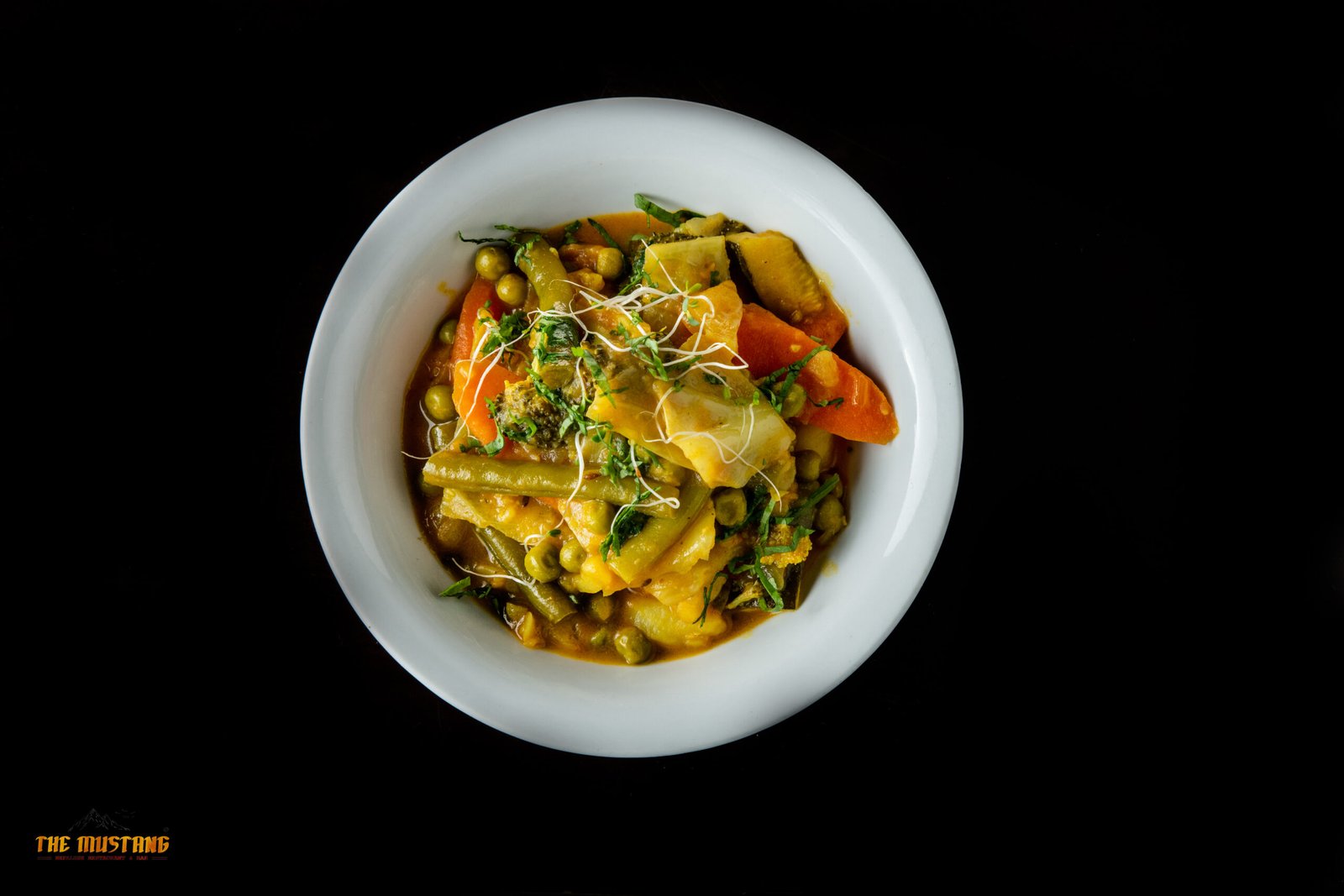 cauliflower, peas, beans, carrots etc slow cooked with mild himalayan spices off the spice mill.