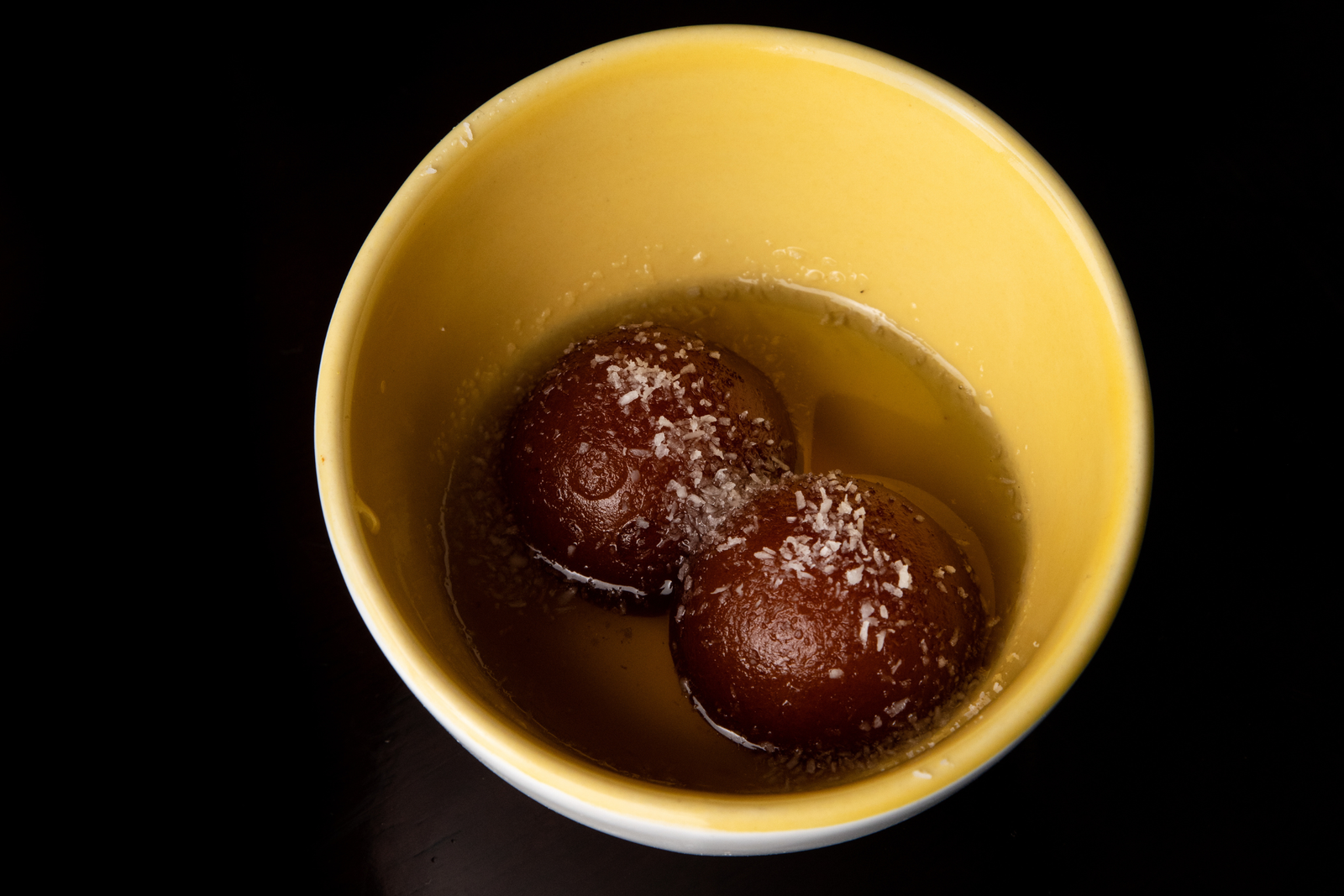 (Goat/Chicken/Lamb/Beef/Veg) tomato pickle, sautéed spinach, a papad and a Gulab jamun.